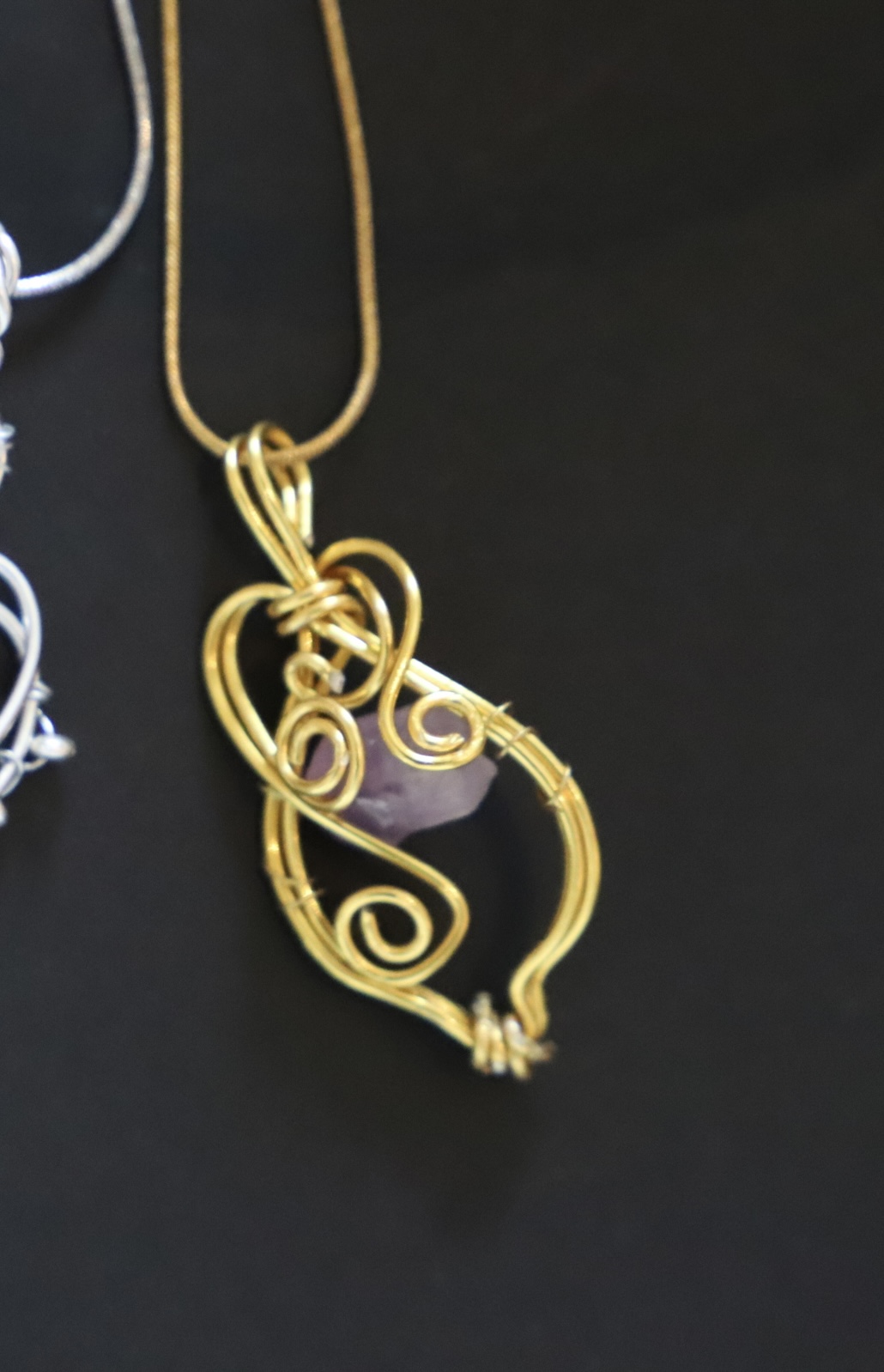 Il filo dorato, simbolo del Sole e della creazione divina, amplifica l’energia dell’ametista donandole calore, vitalità e coraggio.