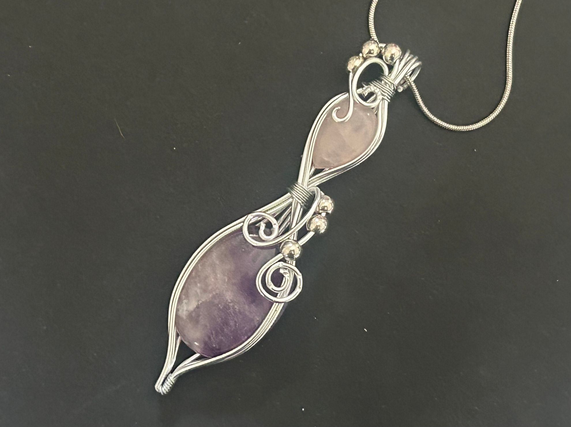 è un talismano per chi desidera unire la profondità dell’anima alla tenerezza del sentire. L’ametista, con il suo respiro cosmico, eleva la mente al silenzio superiore, mentre il quarzo rosa, con la sua carezza delicata, scioglie ogni rigidità del cuore. Insieme creano un campo vibrazionale in cui il pensiero si fa compassione e l’amore diventa consapevolezza.